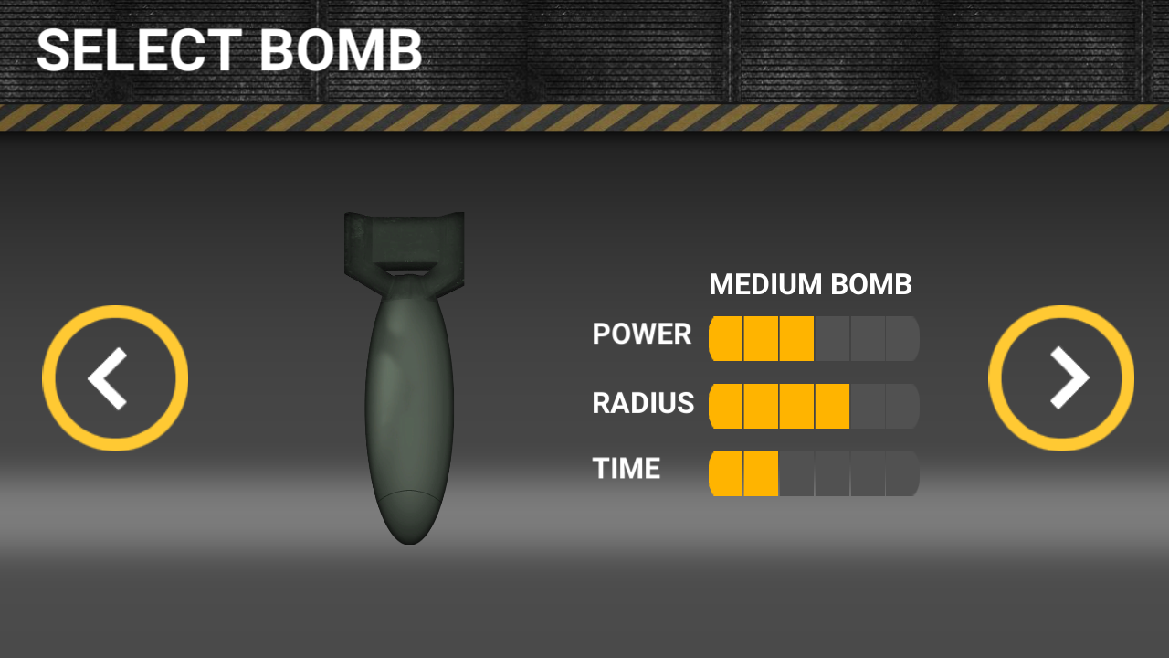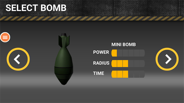 1、下载游戏并启动后,将直接进入核弹选择界面。不同核弹的爆炸威力与持续时间各不相同。