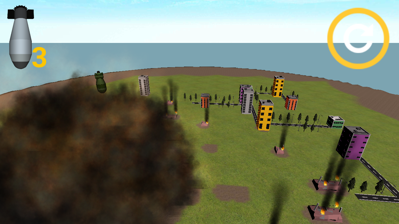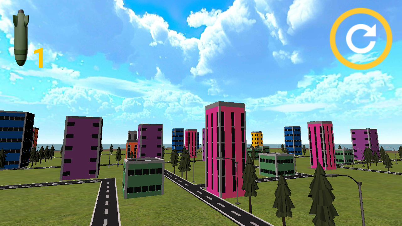 2、选定核弹后进入模拟场景,点击屏幕即可将其投下。