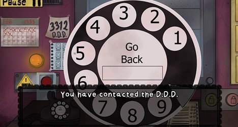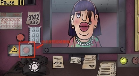 1、发现伪人时,立即点击界面左下角的红色警报按钮,此时左侧墙面会显示出D.D.D.公司的紧急联系电话。