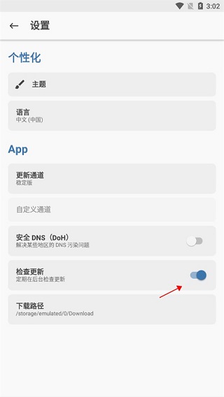 3、开启“检查更新”功能后,有新版本时将自动更新。(注意:更新需在加速网络环境下进行。若无加速条件,可收藏本站下载页,小编会及时更新版本。)
