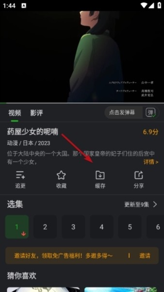 1、首先打开您想观看的影视内容,在播放界面找到并点击【缓存】功能。