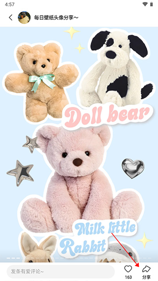 5、进入壁纸图片中点击任意位置后点击【分享】;