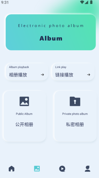 2、点击相册功能,提供相册播放、链接播放、公开相册等服务,轻松查看使用。