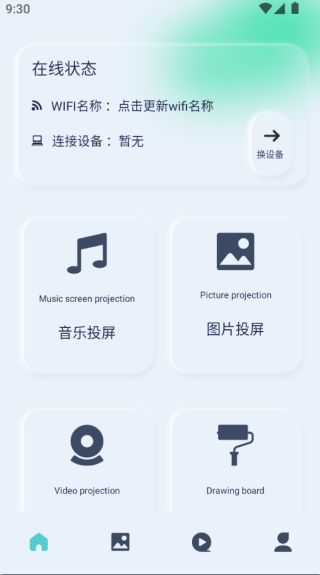 1、打开下载好的软件,进入到主界面,提供音乐投屏、图片投屏等优质服务。