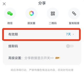4、您可以为分享内容设置有效期,支持自定义时长或无限制分享。