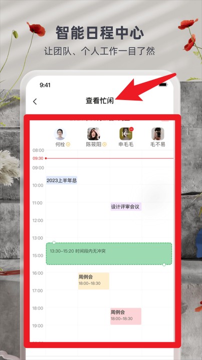 3、智能日程中心可同步查看同事日程安排,方便协调会议时间,团队协作更有序。
