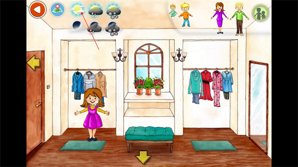 4、界面中的上下左右箭头用于切换场景。例如想到客厅去,只需点击左边的箭头,人物就会自动移动到对应房间。