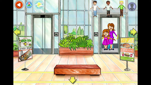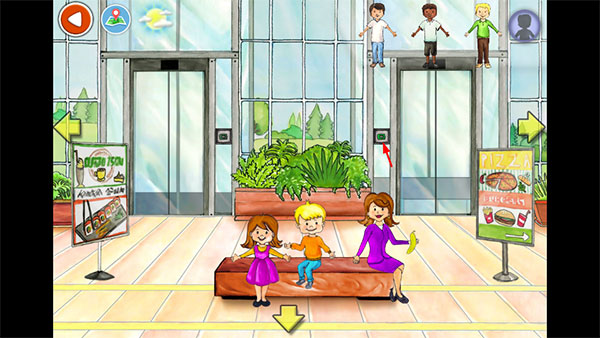 1、进入娃娃屋plus游戏后,先来到电梯门前。与现实生活一样,点击电梯按钮,门就会自动打开。