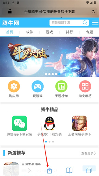 1、打开浏览器,访问自己喜欢的页面,然后点击下方的【分享】按钮。