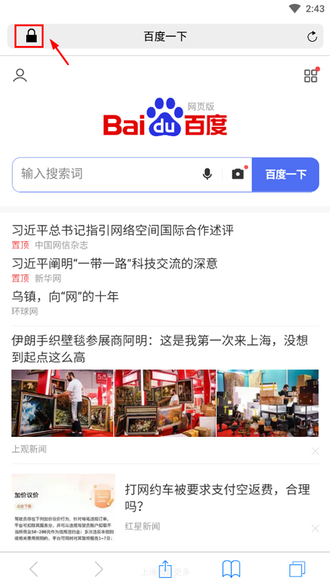 1、用户在浏览网页时,可以点击如下图绿色箭头所指的图标。