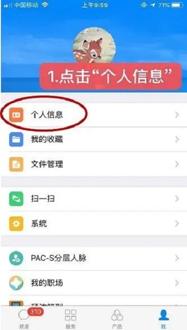 1、打开云助理应用,点击右下角“我的”,进入“个人信息”页面。