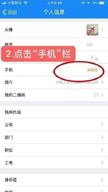 2、在个人信息中找到“手机”选项,此时状态显示为“未绑定”。