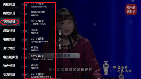 使用遥控器的上下方向键,在左侧的“卫视频道”栏目中找到您想观看的频道。