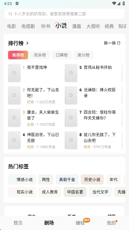 3、除了短剧,该应用程序还提供小说阅读。有时候,当你厌倦了看电视剧时,来读新的小说也是件好事。
