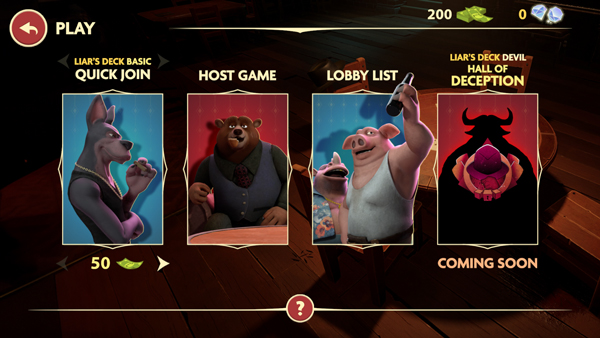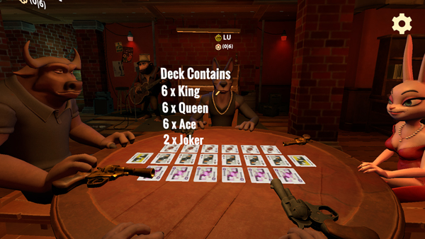 骗子酒馆是一种类似于俄罗斯轮盘赌的桌面推理游戏。在游戏中,玩家将与狐狸、河马和猎犬这三种动物朋友一起玩一场惊险的欺骗纸牌游戏。你需要使用诸如撒谎和虚张声势之类的技巧来赢得最后的胜利。在游戏中,玩家需要轮流打牌并声明牌上的值。你可以谎报这个值,但如果被曝光,你将不得不玩一轮俄罗斯轮盘赌。在六发子弹中幸存一发意味着你可以继续游戏,而失败则意味着游戏结束。