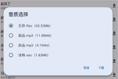 4、在弹出的提示框内,选择您需要的音质选项,并确认下载。