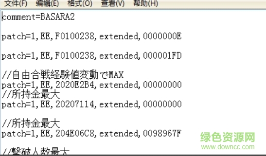 3. 接下来可以在网上找到金手指代码粘贴进去,战国BASARA2日版// 后面是没使用的代码,删除了就是要使用的 (是游戏名称 也可以不要)。