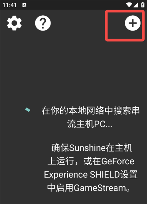 5、接着启动Moonlight串流软件,通常该软件会自动发现同一局域网内的主机设备。若未能识别,可点击界面右上角的“+”图标手动添加连接。