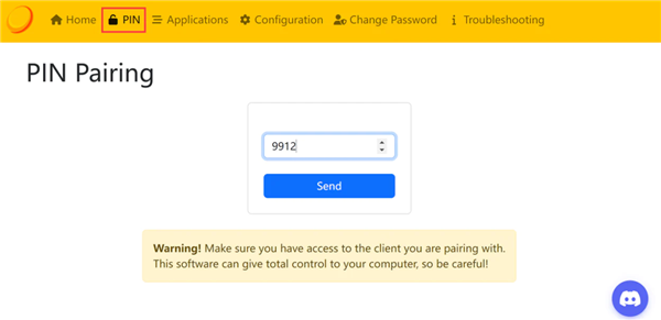 8、最后,将此串流验证码填入Sunshine的PIN设置项中,即可完成设备连接。