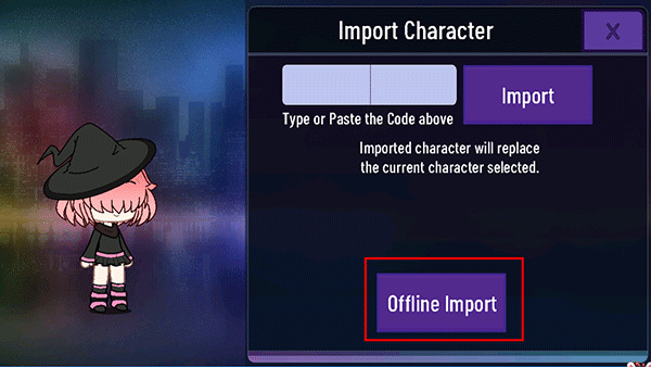3、在框内输入代码,点击“Offline Import”即可。