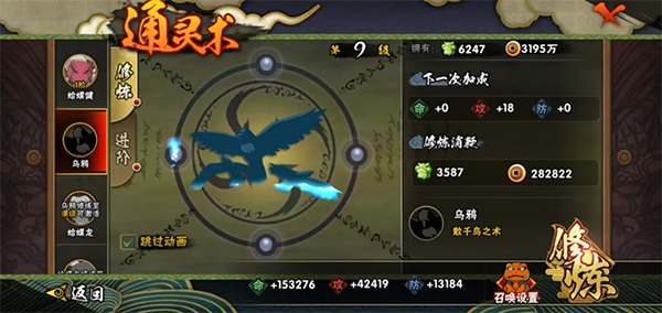 3、此外,在角色等级达到120级,并成功解锁通灵兽乌鸦后,还将开启通灵兽的进阶系统。消耗声望、培养石、铜币即可将通灵兽进阶,解锁对应天赋,提升战力。