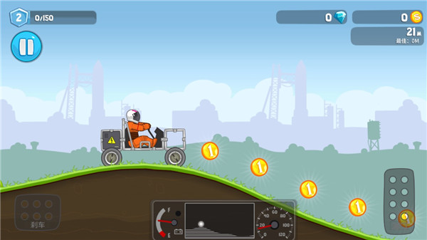 3、改装完赛车,你就可以出发了。刹车在左边,油门在右边。若车头抬起,则刹车;如果后部抬起,加速。我们所要做的就是操纵赛车在能量耗尽之前到达终点线。就是这么简单。