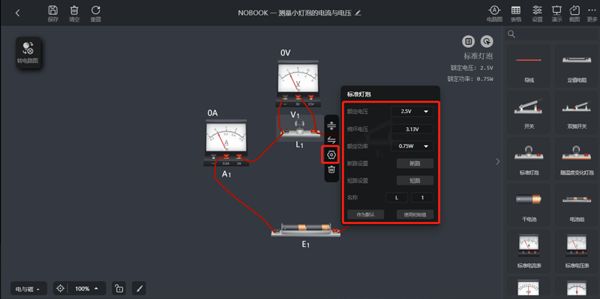 2、根据需求在右侧器材栏选取需要的器材,即可进行组装与探究。
