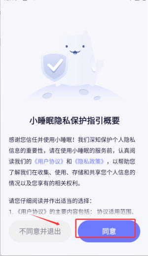 1、阅读并确认服务协议,点击进入睡眠管理功能主操作界面;