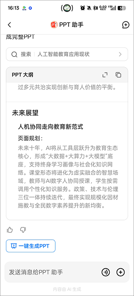 将已复制的文本内容粘贴至输入框,点击“一键生成”即可自动生成对应幻灯片。