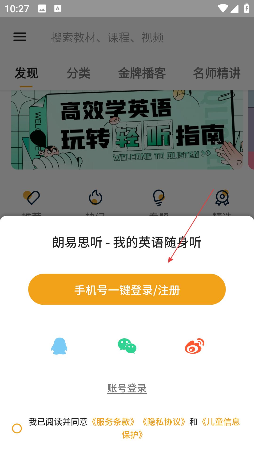 1、登录界面用户可选择手机号一键登录、注册,也可通过QQ、微信和微博登录,登录前需勾选同意服务条款、隐私协议和儿童信息保护。