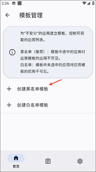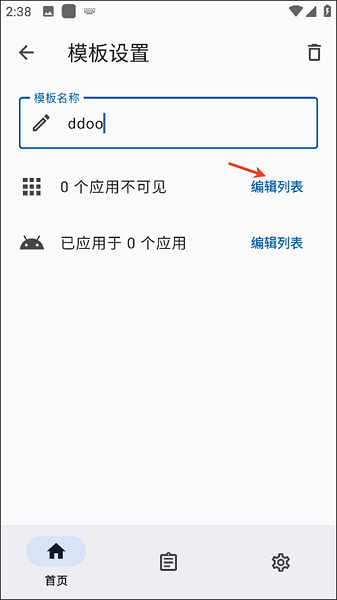3、模板名称可自定义,然后点击选择不想被检测到的应用。