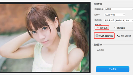 4、点击此按钮后视频会根据选择的直播方式进行切换适配展示。