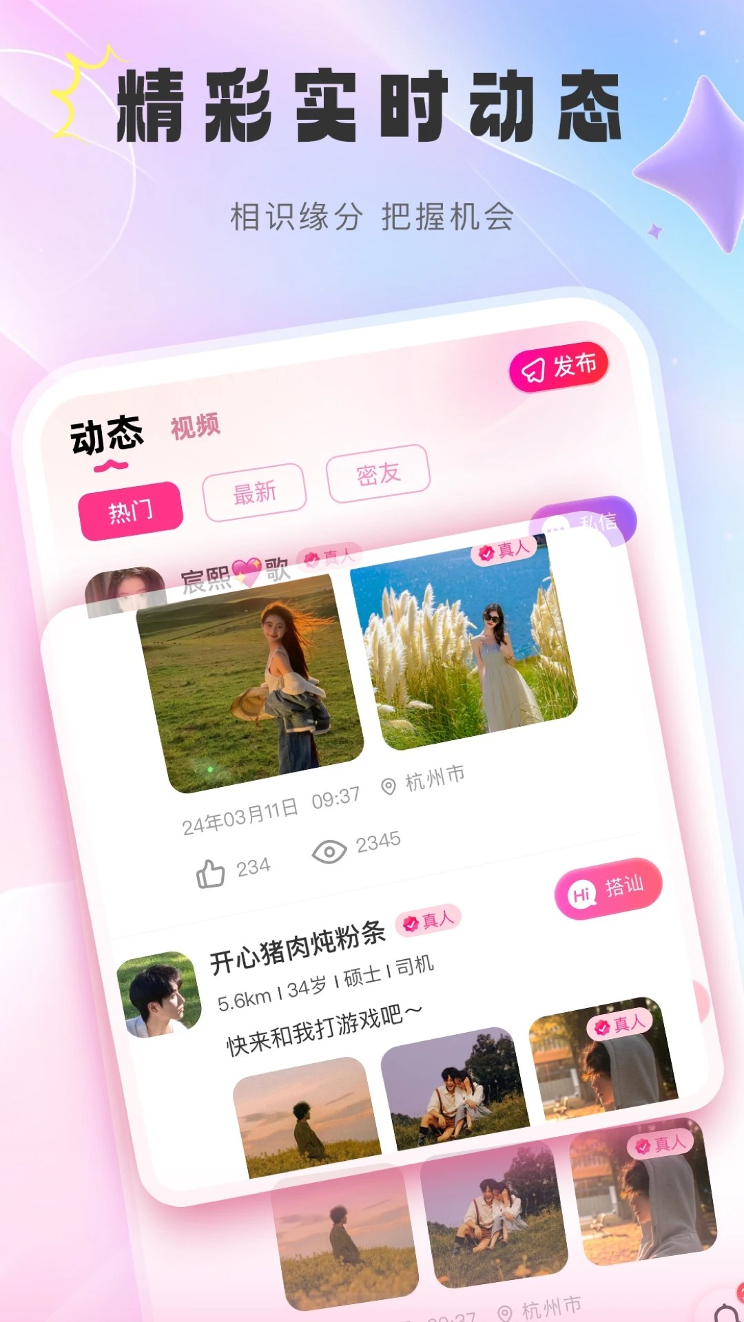 牵觅是一款受欢迎的在线交友软件,可以让用户直接体验到真正的单身配对,还内置社交娱乐话题,动态圈内内容极为全面,随时随地与喜欢的ta聊天互动。还可以随时设置私信和秘密聊天通道,轻松通过私信与颜值高的单身男女互动,享受不一样的甜蜜社交,也自带高清视频聊天功能,内置大量颜值高的异性视频聊天,让你享受浪漫的社交和会面,能完全满足用户的所有交友需求,有需要的用户欢迎来本站下载软件。