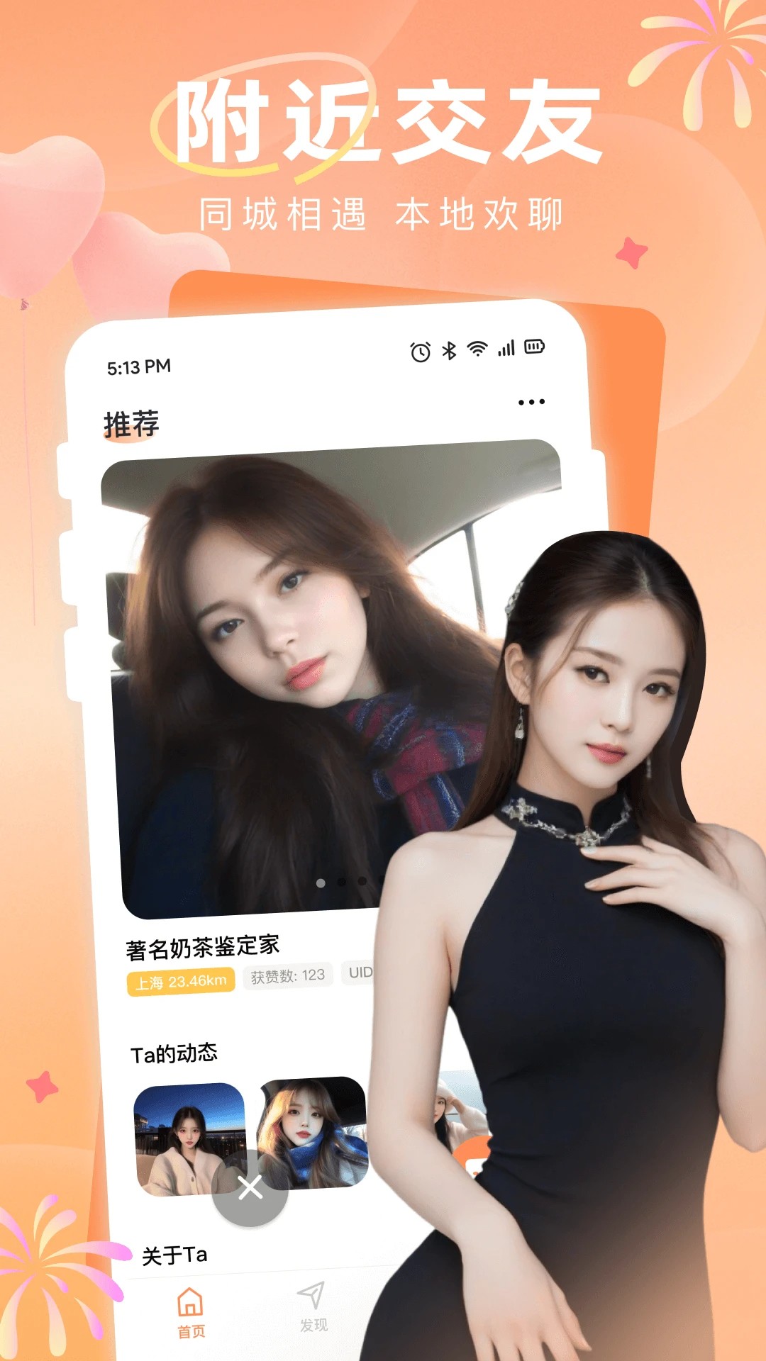 附近约见是一款受欢迎的在线聊天软件,支持多账号登录,用户可以自由进行匹配,自由呈现附近的优质单身异性,轻松开启有趣的聊天互动,还加入了全新的筛选功能,随时根据用户的条件进行筛选推送,可以帮助用户快速找到知心好友,自由享受便携的交友服务,还提供多样化的聊天话题,可以帮助用户在聊天过程中打破尴尬,能完全满足用户的所有交友需求,还能及时发布朋友圈来交流讨论,有兴趣的用户欢迎下载软件。