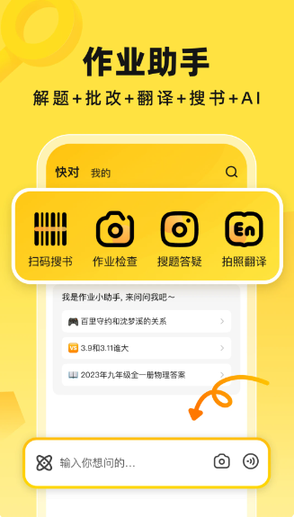 块对作业致力于为上亿用户提供整本教辅解答、AI解题、答疑、写作、翻译及文件扫描等服务,接入DeepSeek大模型,AI答疑更智能,适用于中小学生、大学生、家长、老师及职场人群。题库涵盖小学、初中、高中各学科的习题,更有权威出版社编写的高质量解析。家长、老师也能通过快对作业跟踪学生的学习情况。让作业问题不再成为孩子的烦恼,用快对作业,轻松搞定作业,感兴趣的朋友不要错过下载。