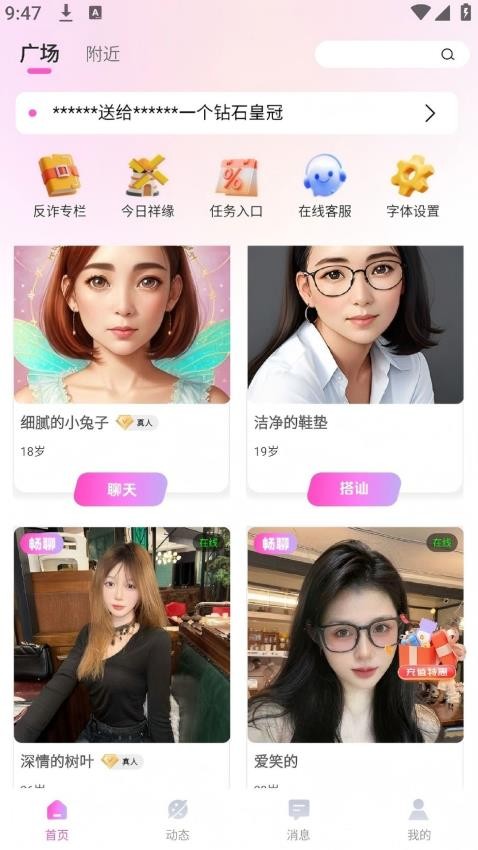 支持用户在线搜索约会任务,让他们完成任务并获得更多奖励;