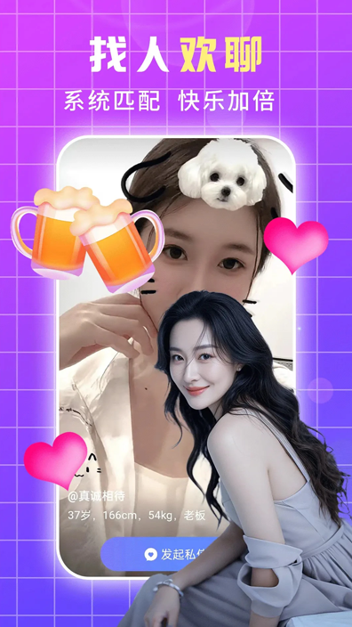 1、寻求高效直接社交的单身人士:对于那些希望快速建立联系,不愿在传统社交平台进行漫长等待和文字铺垫的用户来说,“一键聊天”和音视频功能能够帮助他们更直接、高效地进行沟通和了解。