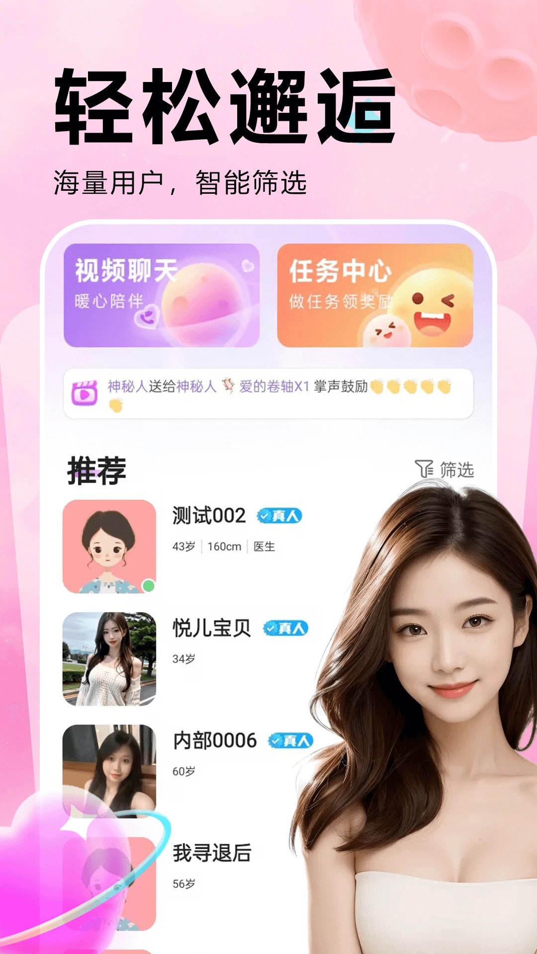 4、无论是文字聊天还是实时视频通话,您都可以在约会中享受令人满意的沟通体验。