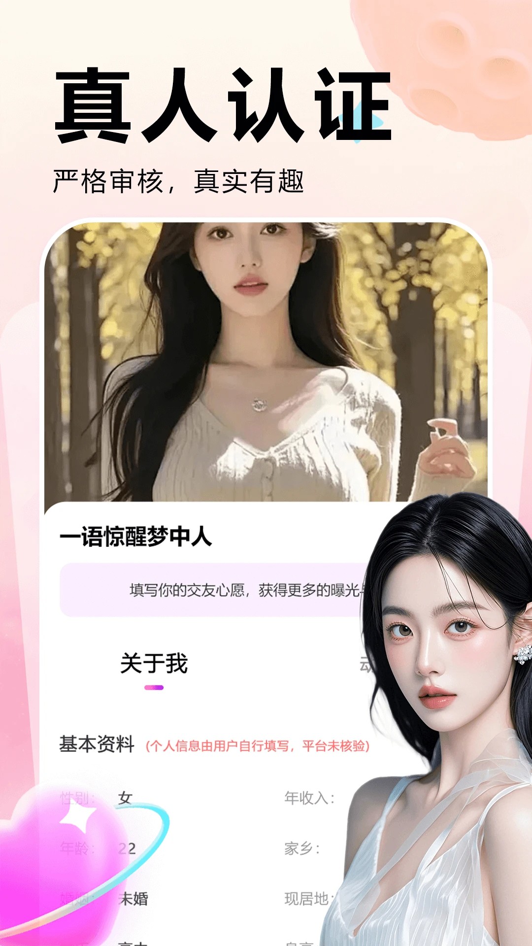 每个人都需要对自己的身份信息进行实名认证,为用户提供更真实的约会服务。