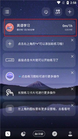 1、自律场景全覆盖 从起床到学习到睡觉全方位时间轴记录,学习打卡计时全方位覆盖。
