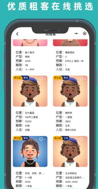 2、房东也可以在网上选择优质租户,找到合适的租户,并过滤出更多的租户名单。