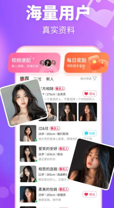 妙遇app是一款广受单身人士喜爱的约会软件。该平台聚集了大量优质的单身人士,可以支持用户随意与自己喜欢的人聊天,为用户提供更多的在线交友机会,让用户更方便地结交志同道合的新朋友,从而享受前所未有的约会体验。该软件保证用户的真实性,人工审核用户信息,同时根据用户的喜好推荐兴趣相近的用户。它通过多种交互方式方便用户进行社交互动,还有更多实用功能等待用户去探索。