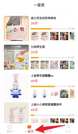 3、在“一番赏”页面可查看并参与各类奖品抽取活动,使用金币兑换心仪的实物奖励。