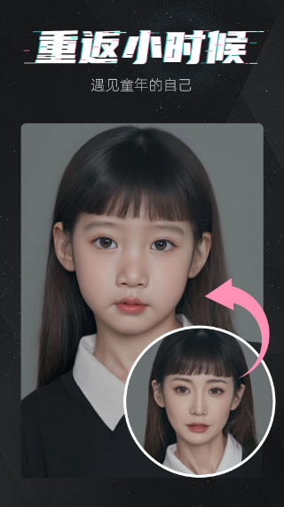 3、【时光穿梭机】 时光旅行,飞跃时间限制。只需一张照片,让我们来一场穿越时空的惊奇之旅,使用我们的时光特效,一瞥未来与童年的自己。让时光不再是秘密!