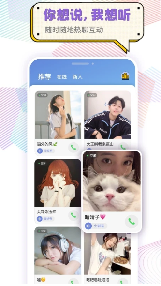 3、心动的声音 语音聊天可以让用户遇到打动你内心的声音,成为声控用户的福利知音。
