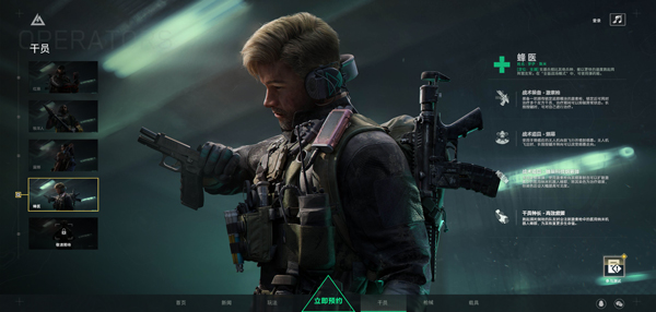 2、选择四个经典兵种突击兵、狙击兵、工程兵、医疗兵下的多种角色。
