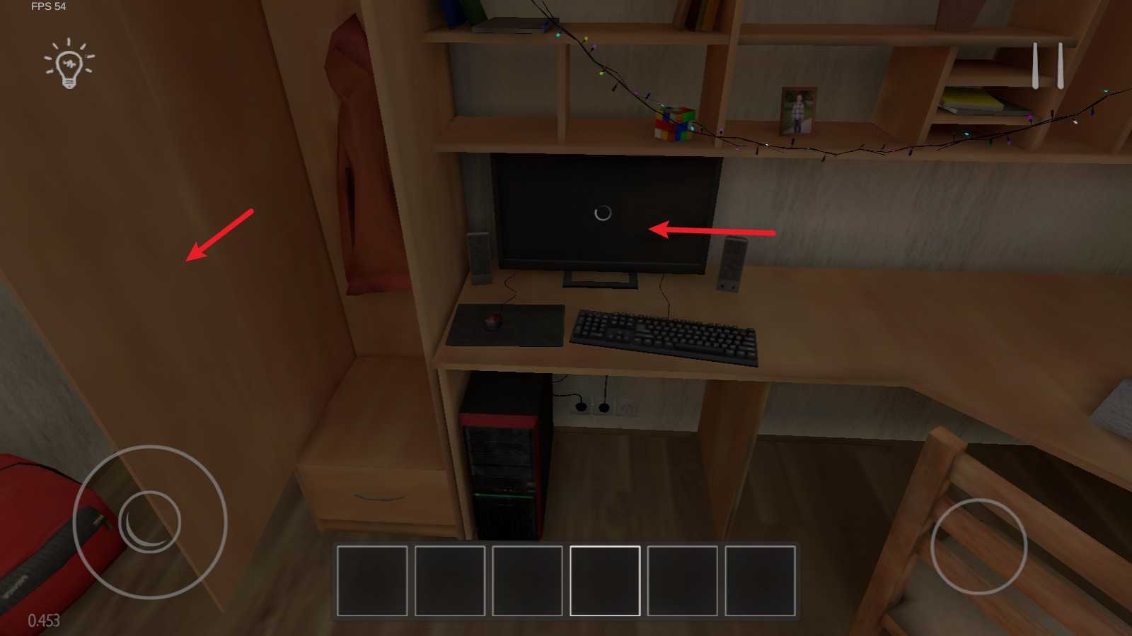 3、对于场景中的物品,我们通过点击即可交互,例如电脑,柜门之类的。