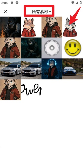3、在「所有素材」中挑选你要替换的人像素材或上传照片,系统将自动识别人像区域。