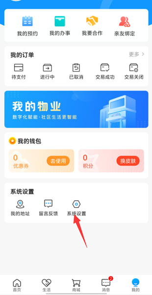 1、我的界面中点击下方的系统设置功能。