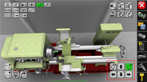 1、我们可以通过数控机床模拟器右下角的【方向键】控制溜板箱的上下左右移动。